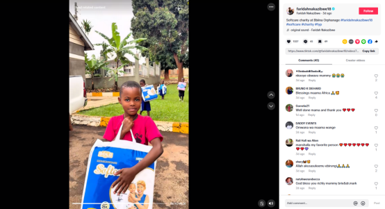 (非洲之家孤儿院捐赠现场,图源:Softcare Uganda Facebook)